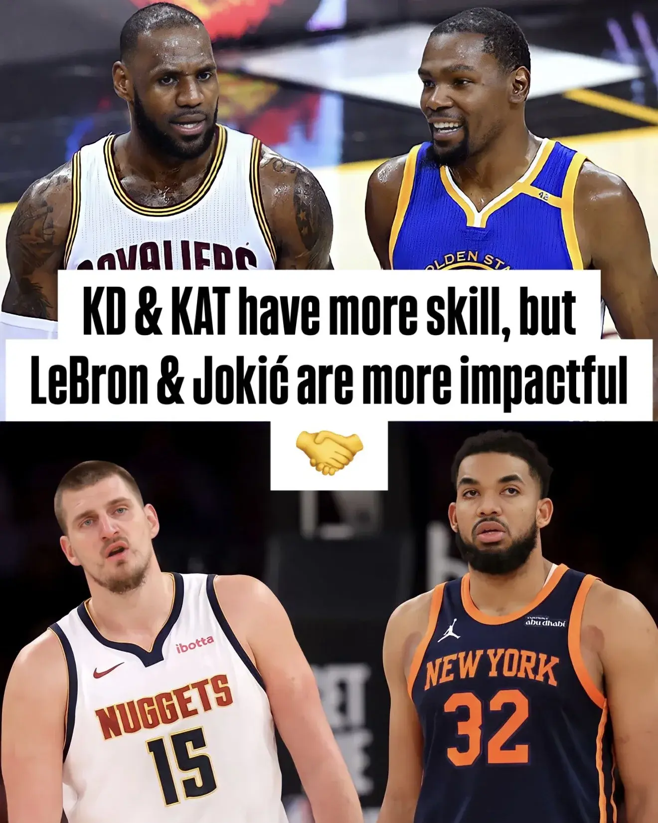 值得一提的是,近日美媒Run It Back更新社交媒体,晒出前NBA球员路易斯·威廉姆斯在播客节目中的言论,路威表示詹姆斯是比杜兰特更出色的运动员。路威还拿唐斯和约基奇举例子,路威说道:“唐斯无疑是技术更出色的球员,但我认为约基奇掌控比赛的方式更具影响力。他不会出现在外线,试图成为最好的射手,而是会试图将球传给最好的射手。他并不是刻意去成为最好的传球手......好吧,他就是最好的传球手,但他总是能够将队友们放在最合适的位置,帮助他们取得成功。”