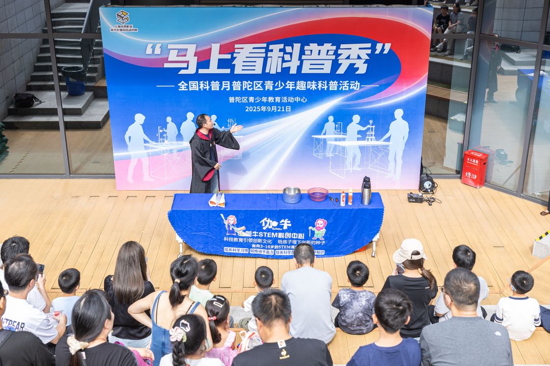 此外,9月正值全国首个科普月,同日普陀区青少年教育活动中心长风校区还为青少年带来了一场沉浸式科普互动秀——“马上看科普秀”。活动分上下两场,吸引来自全区19所学校的百余组家庭参与。即日起,该中心将在常态开放基础上,在周末及国庆加推“半马苏河·全龄友好”特别活动,包括科技AI挑战、艺术写生、武术大赛等,吸引更多家庭参与体验。