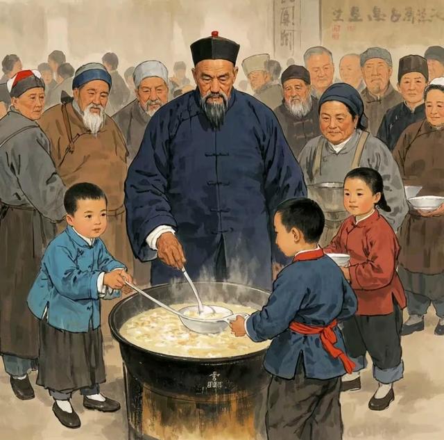 有年饥荒,曾国藩将寿宴改作施粥场,带着子女为每碗粥插入"验筷"——若筷子浮起说明粥稀,立即补粟。